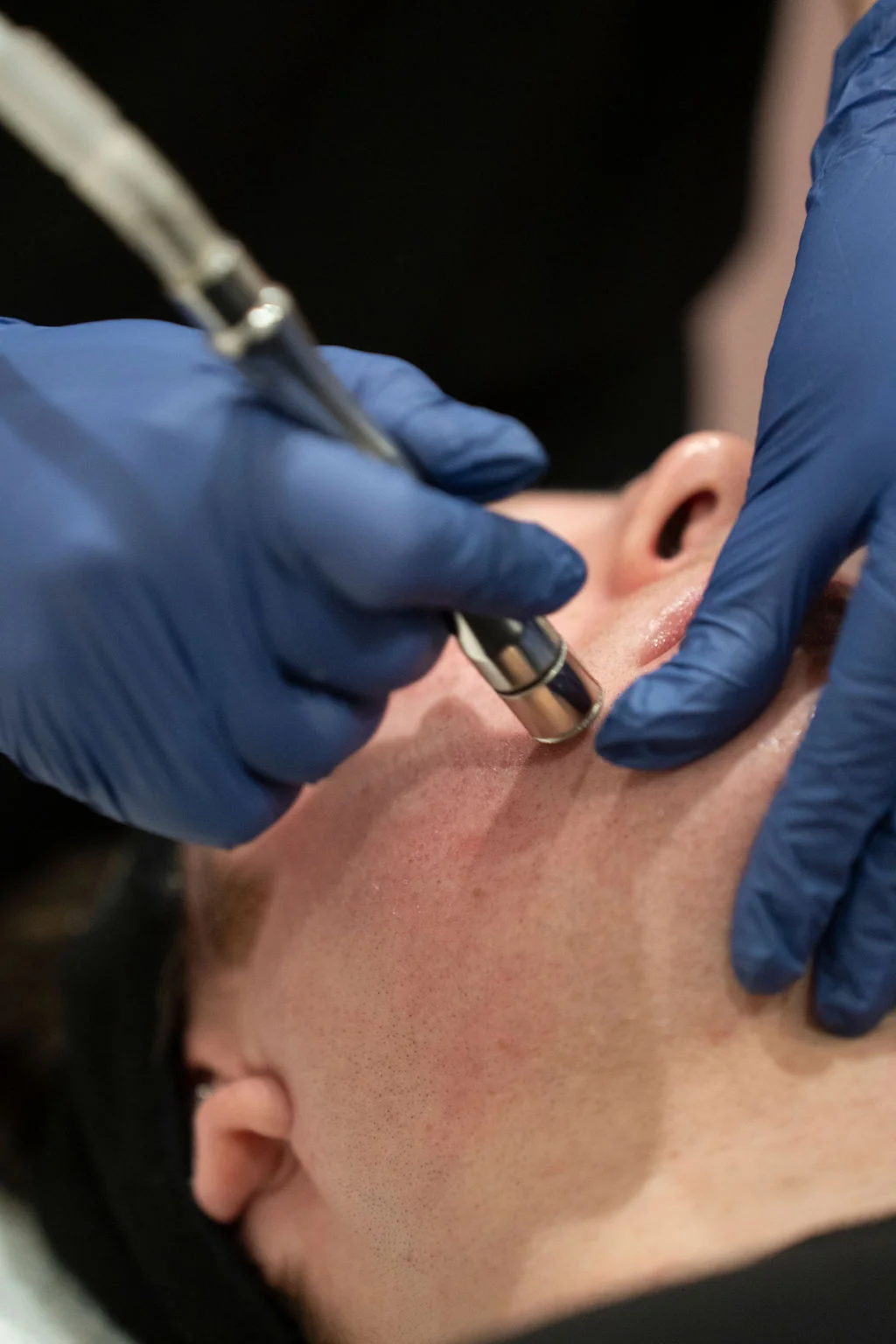 This treatment uses a Diamond Microdermabrasion Tip to exfoliate and suction the skin and remove stubborn blackheads and clogged pores while exfoliating. The tip of the tool that we use is more gentle than classic Dermabrasion devices resulting in less irritation, damage, and downtime to heal.